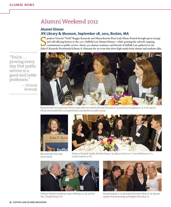 MAYERCHAK + COMPANY GRAPHIC DESIGN PRODUCTION EXPERTS DESIGN + PRODUCTION The Client Suffolk University Law School, Boston The Project Annual alumni magazine, 52 pages The Challenge Suffolk University had just established new guidelines for their rebranding campaign, and wanted to redesign their alumni magazine to work wtihin the new brand identity. This was the first publication to be created using the new branding. The Solution Suffolk Law School hired us to design and produce the magazine. We took care of all aspects of design & production, including cover design, interior pages, stock photo research, illustration. We also did the Photoshop color correction on alumni photos, and coordinated printing.